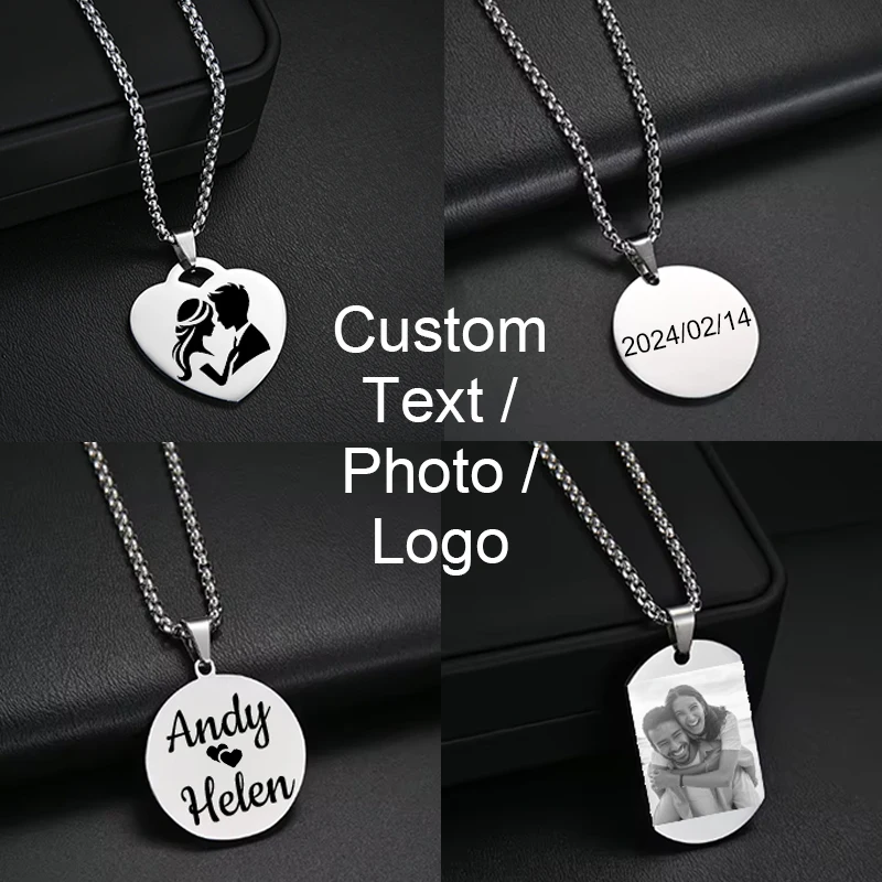 Personalized Necklaces Stainless Steel Engraved Photo Logo Text Pendant For Women Men Christmas Valentine's Day Jewelry Gifts
